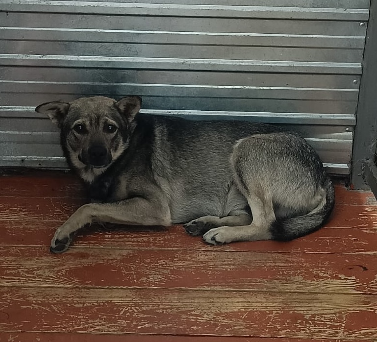 26.Сука, примерный возраст-3 года, окрас: серый, шерсть обычная, б/п, высота в холке 55 см. Поступила в приют 22.03.2025 г. Выбыла из приюта 11.04.2025 г.