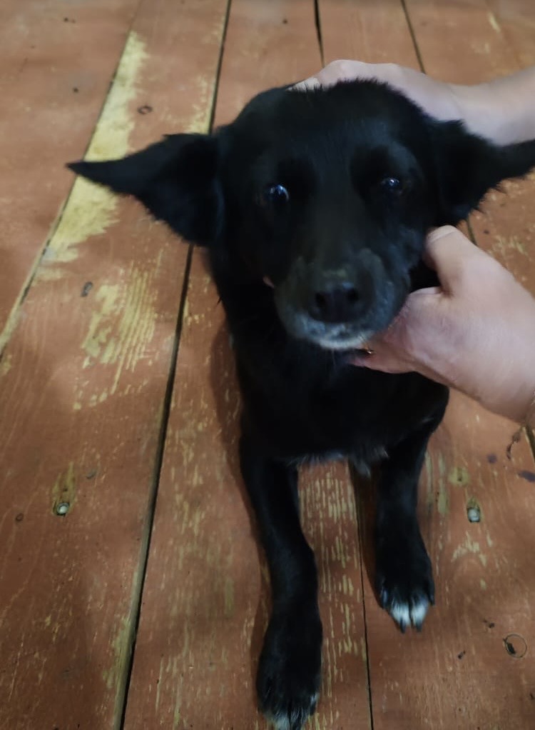 1.Сука, примерный возраст-7 мес., окрас: черный с белым, шерсть обычная, б/п, высота в холке 30 см.
