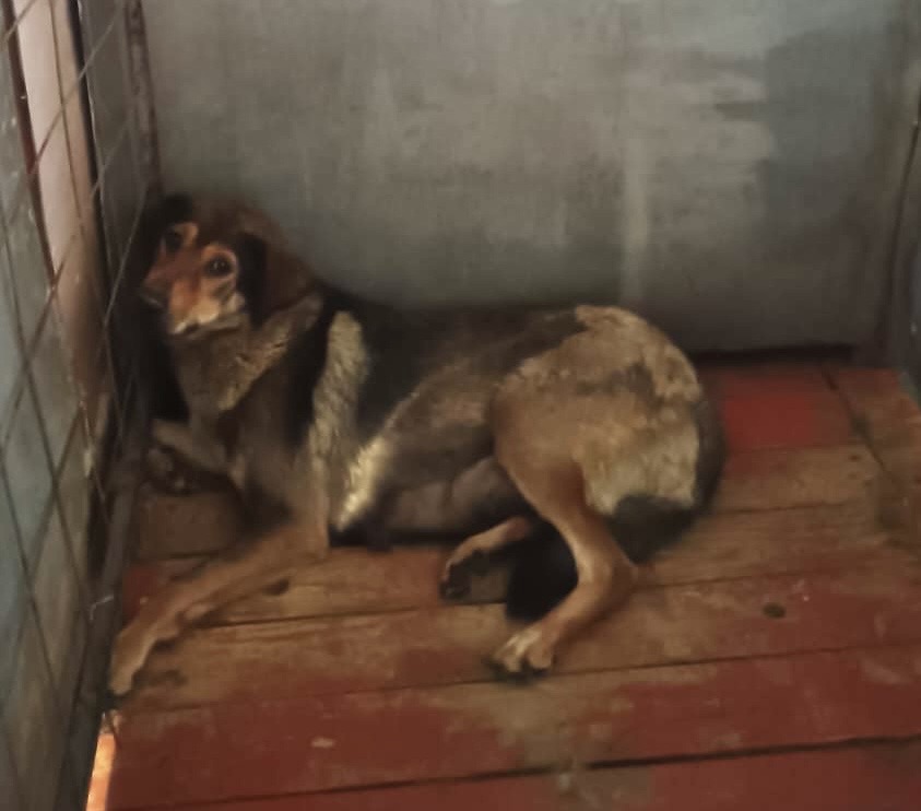 7.Сука, примерный возраст-3 года, окрас: коричневый с черным, шерсть гладкая, б/п, высота в холке 30 см. Поступила в приют 13.08.2025 г.