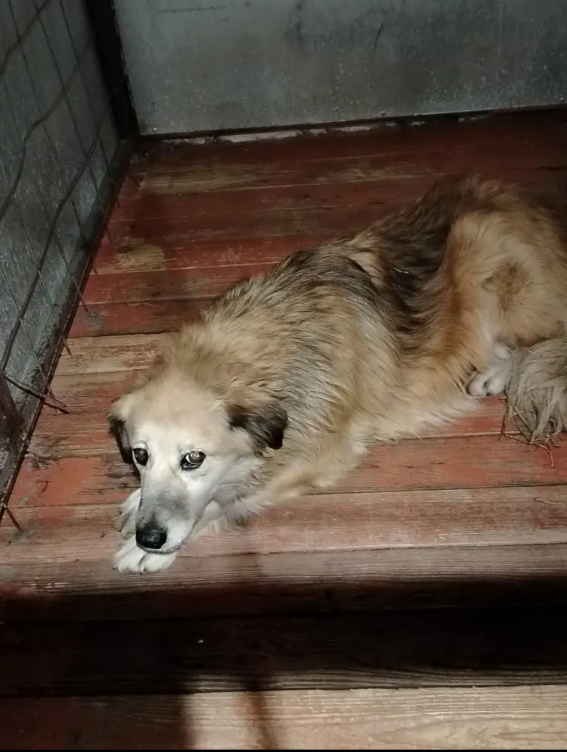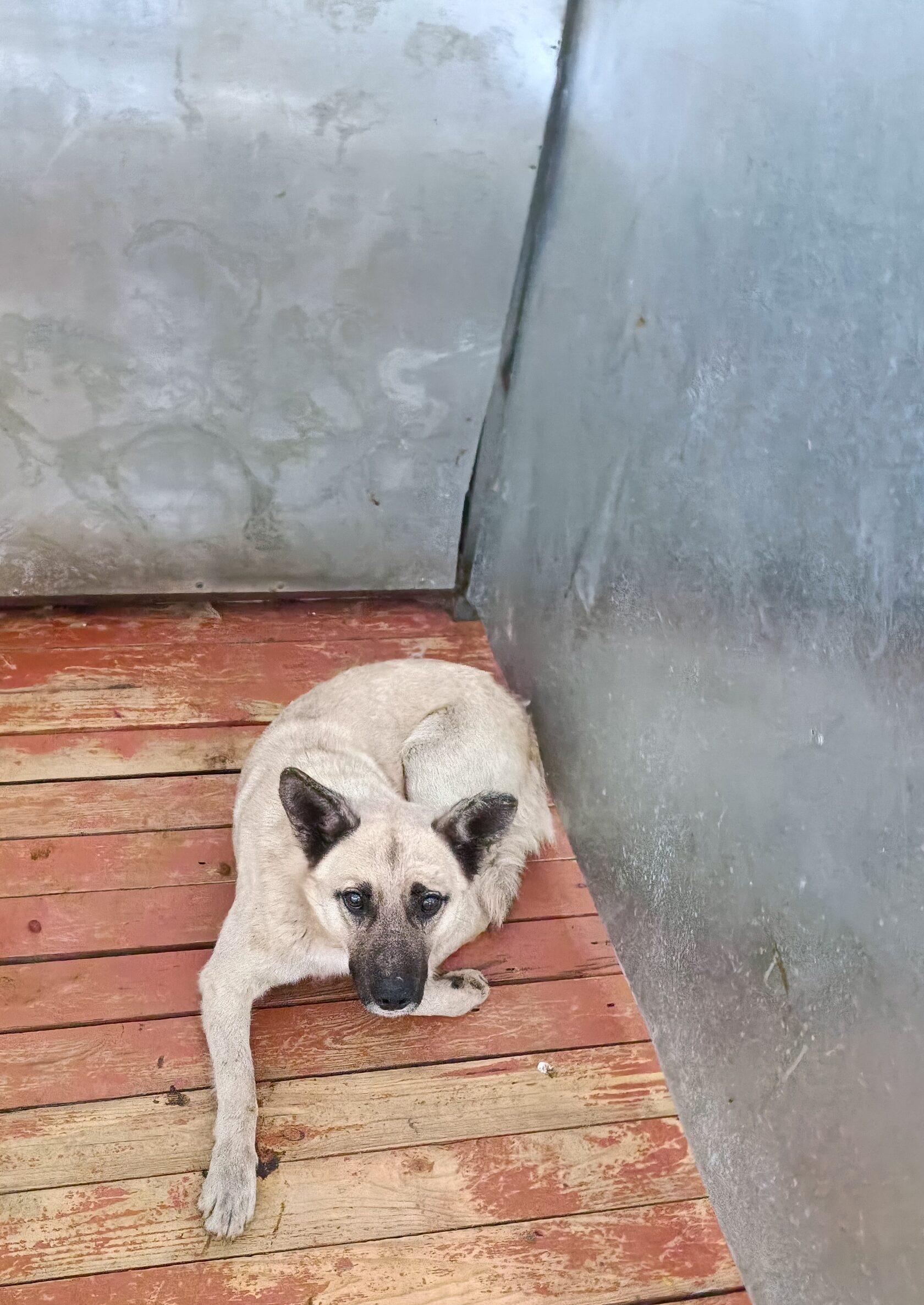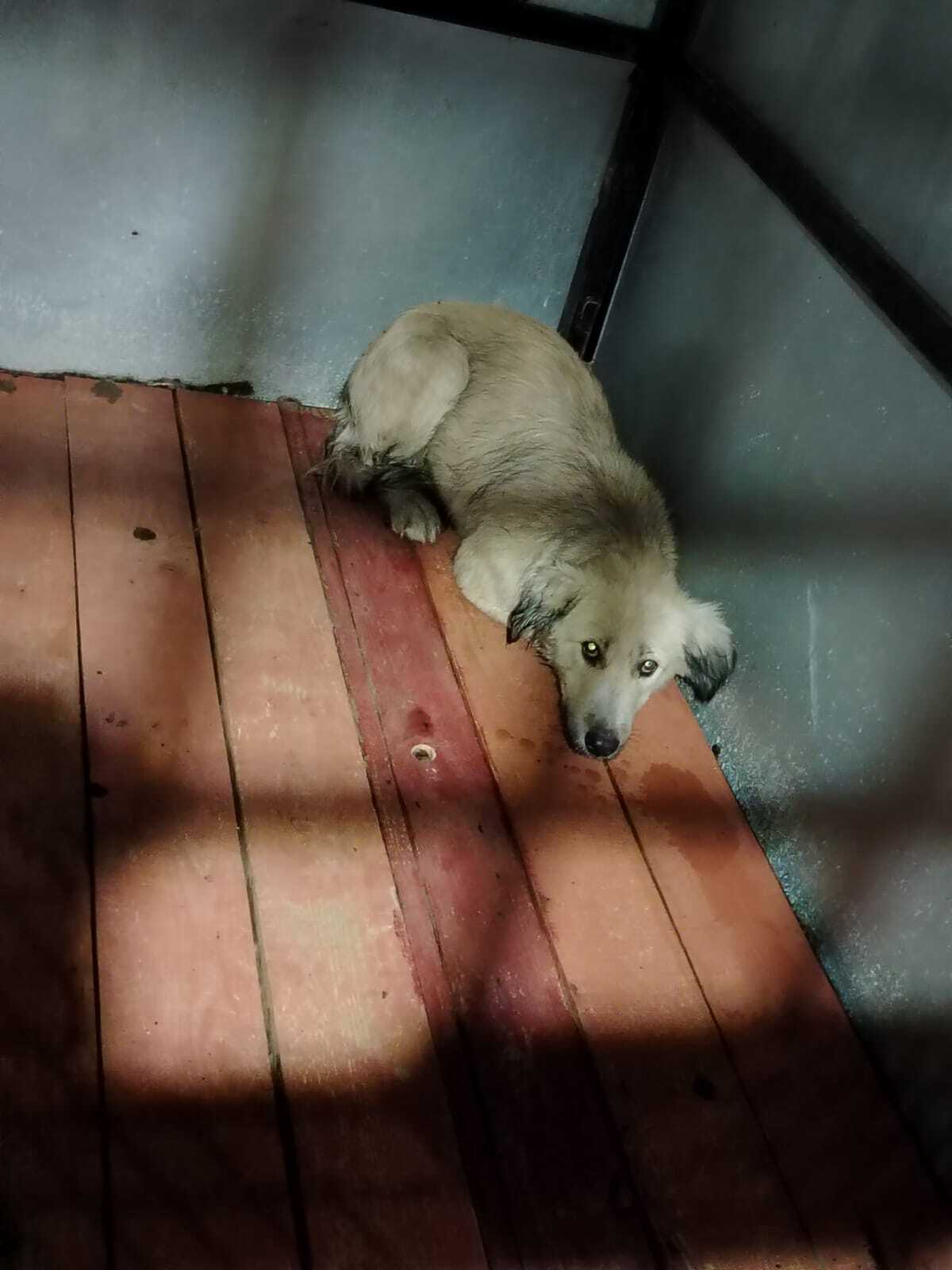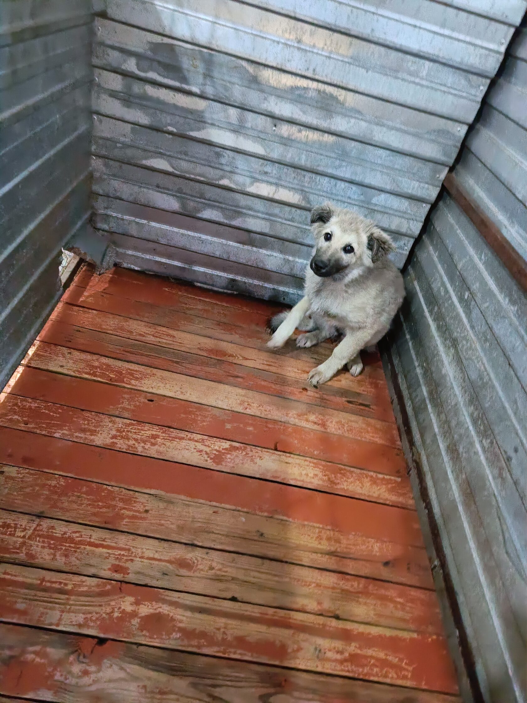 59.Сука, примерный возраст-2 года, окрас: бежевый с белым, шерсть гладкая, б/п, высота в холке 30см. Поступил в приют .29.11.2025 г. Выбыл из приюта 16.12.2025 г.
