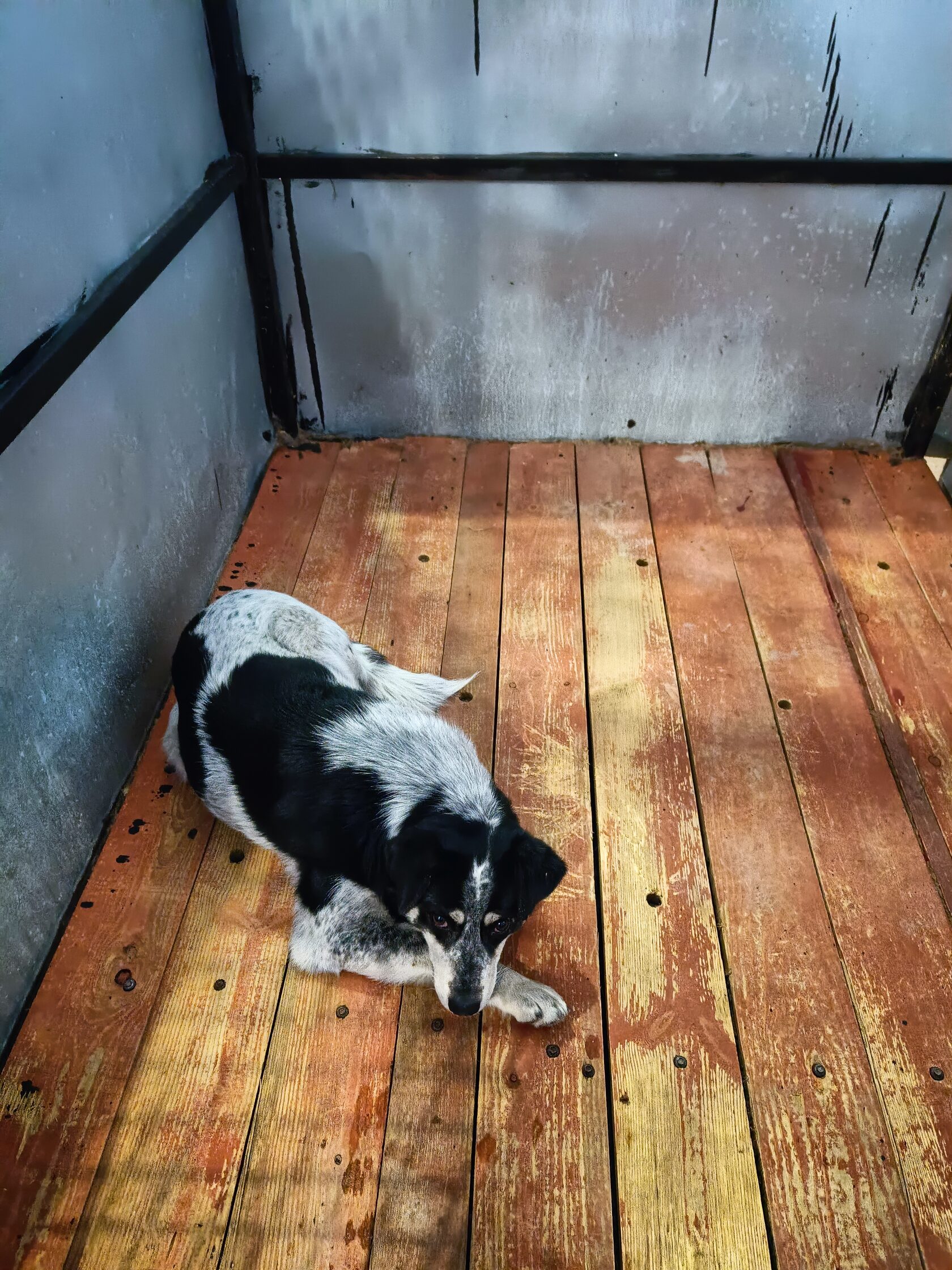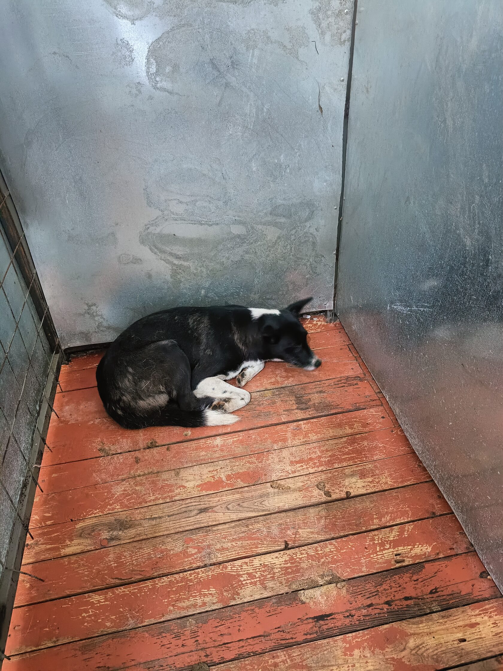 53.Сука, примерный возраст-4 года, окрас: чёрный с белым, шерсть гладкая, б/п, высота в холке 30см. Поступил в приют .29.11.2025 г. Выбыл из приюта 16.12.2025 г.