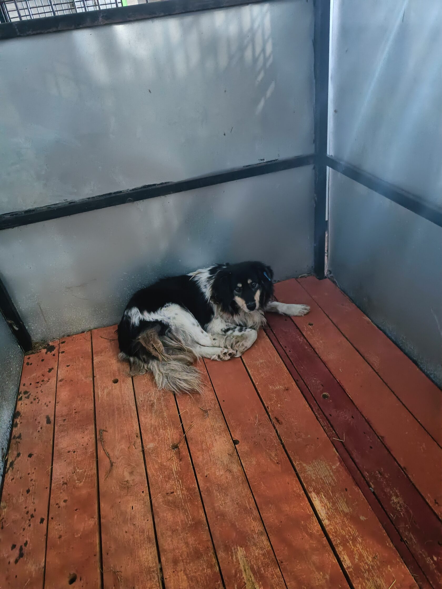 55.Сука, примерный возраст-4 года, окрас: трехцветный, шерсть гладкая, б/п, высота в холке 30см. Поступил в приют .29.11.2025 г. Выбыл из приюта 16.12.2025 г.