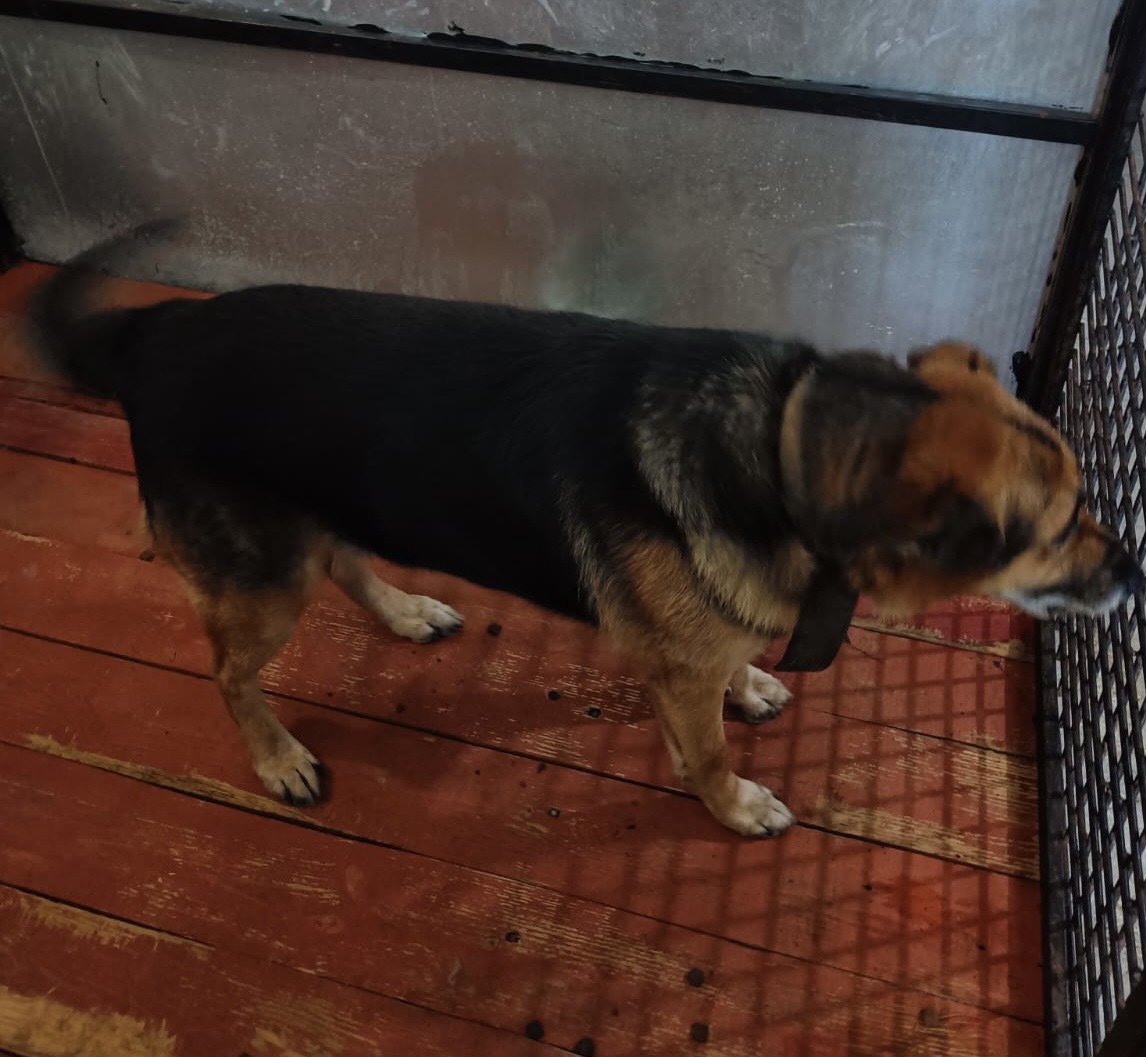 2.Кобель, примерный возраст-6 лет, окрас: черно-рыжий, шерсть гладкая, б/п, высота в холке 50 см. Поступил в приют 06.08.2025 г. Выбыл из приюта 23.08.2025 г.