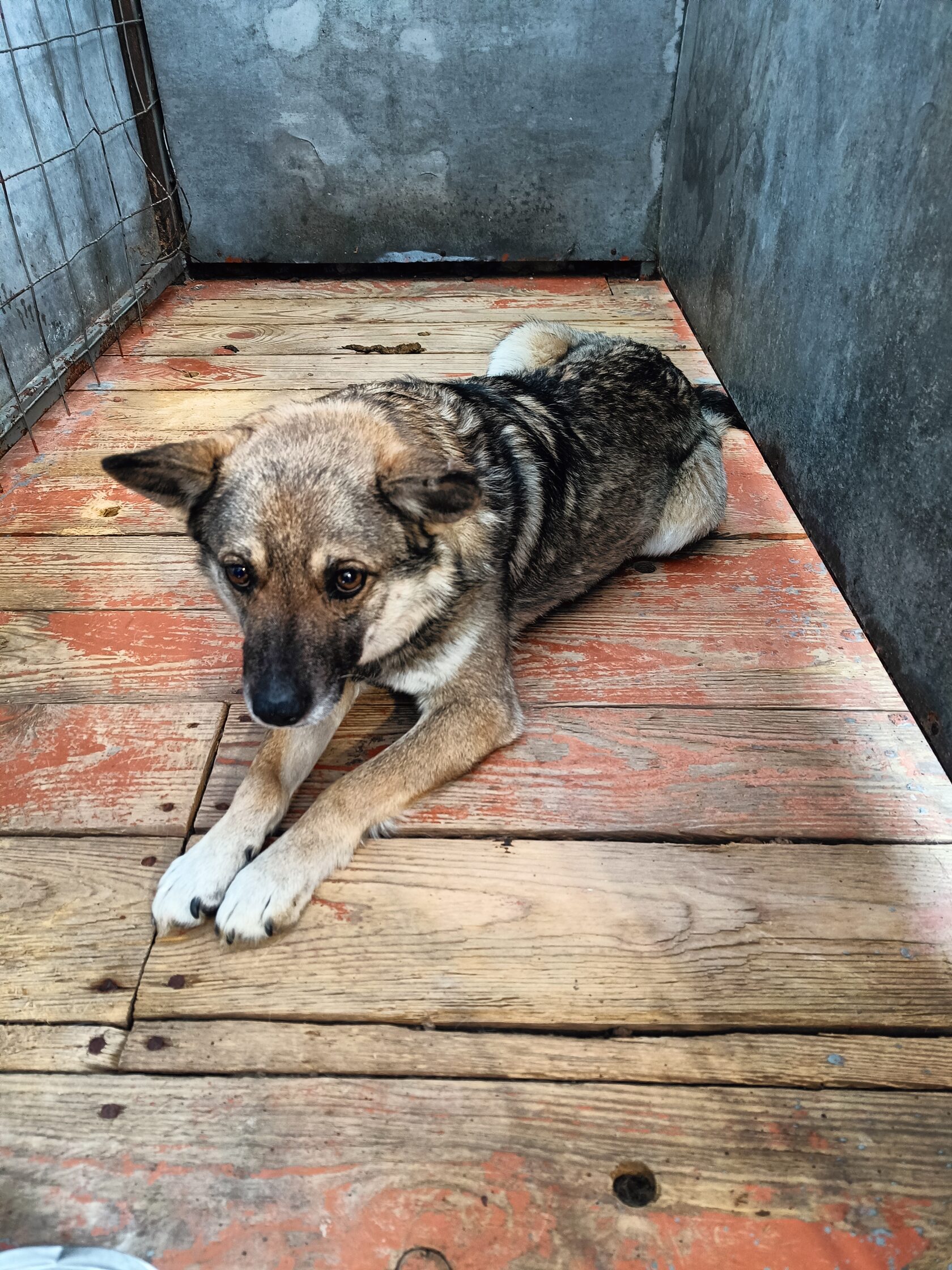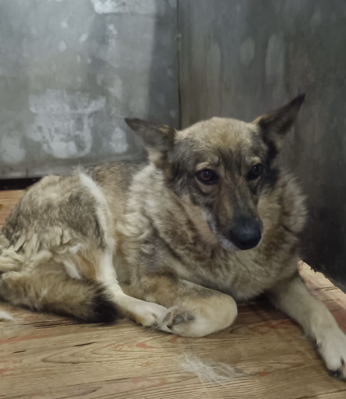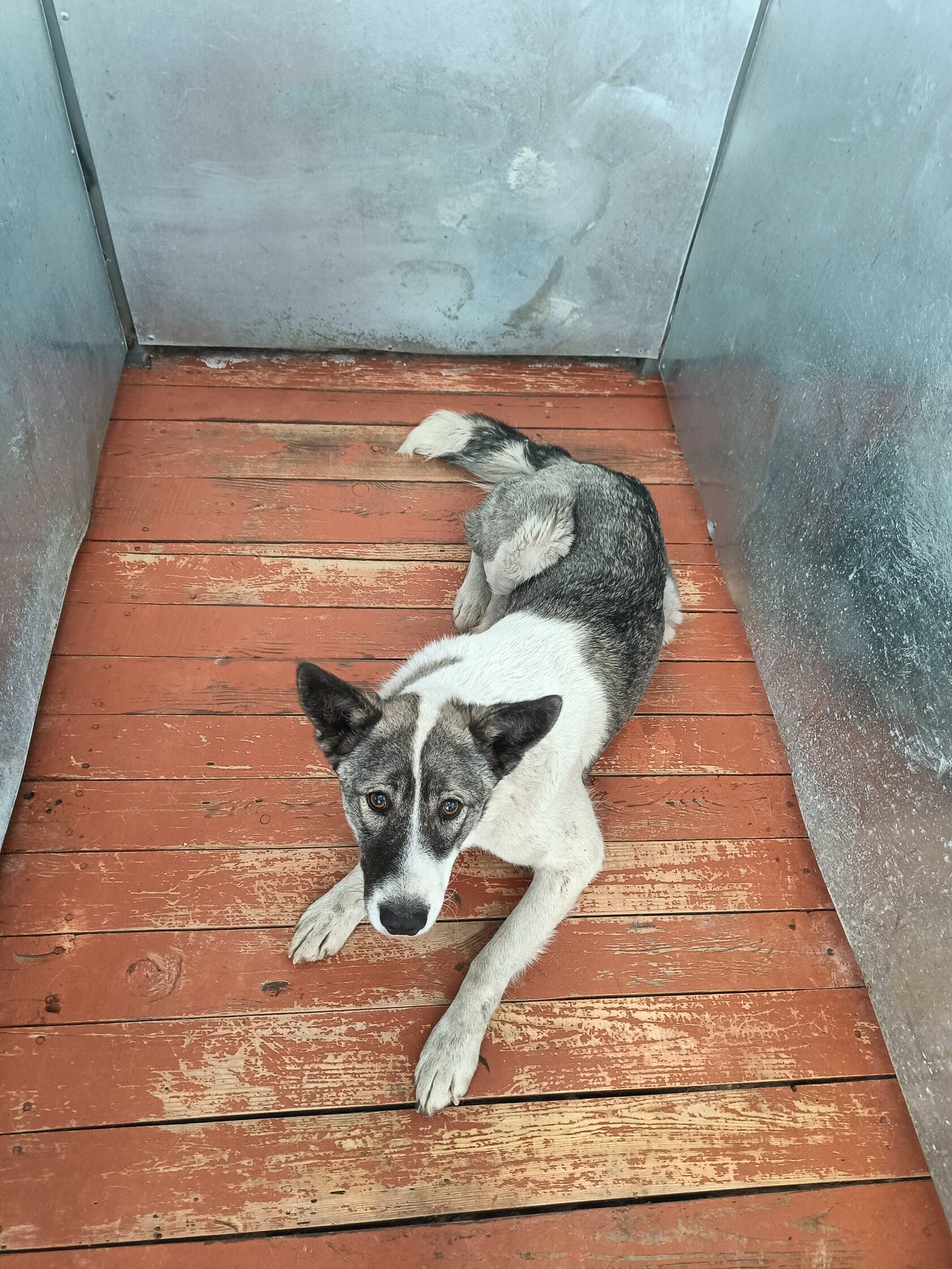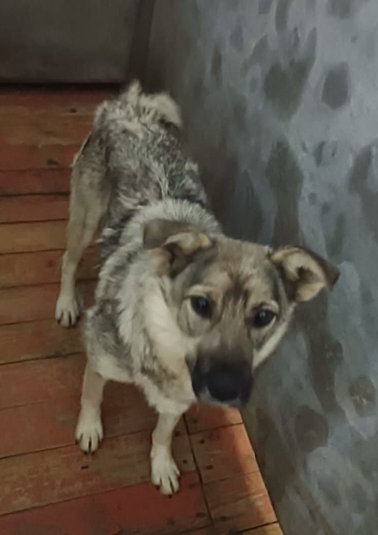 37.Сука, примерный возраст-3 года, окрас: серый с белым, шерсть гладкая, б/п, высота в холке 30 см. Поступил в приют .27.11.2025 г. Выбыл из приюта 14.12.2025 г.